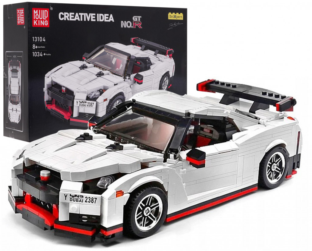 1034 építőelemből álló készlet fehér sportautó .