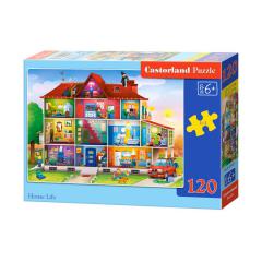 120 darabos kirakó. A puzzle egy családi ház életét ábrázolja. 6 éves kortól ajánlott.