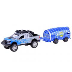1:32 méretarányú pick-up tartályos utánfutóval hang- és fényeffektusokkal kék színben