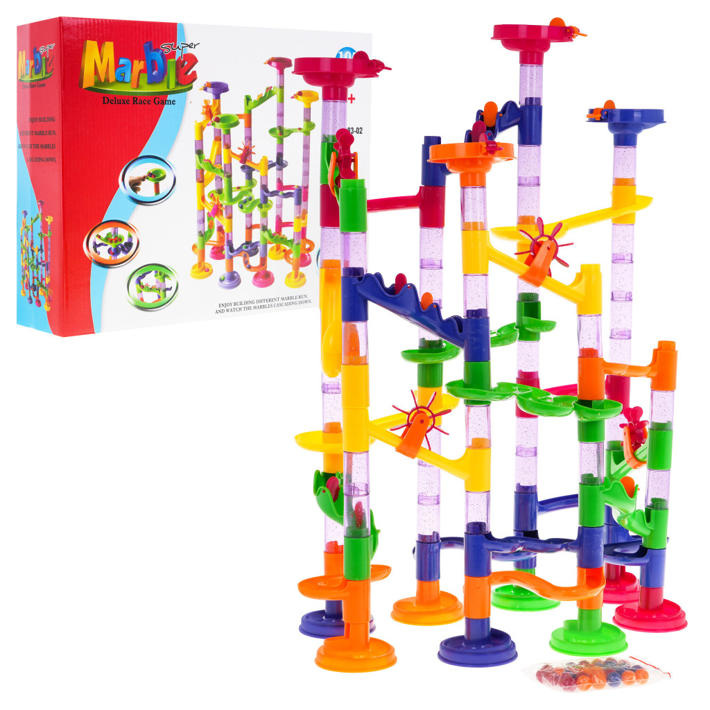 Kövesse a készletben található képi utasításokat, vagy elkészítheti saját tornyát. A labdák mozgásba hozása és a kanyargós alagutakon való áthaladásuk sok örömet okoz. A játék pozitív hatással van a kreativitás, a képzelet és a kézi készségek fejlesztésére.