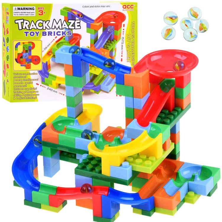 A kockákból építhető, színes labdákhoz való pálya minden gyermek számára ajánlott. A készlet 152 elemből áll.