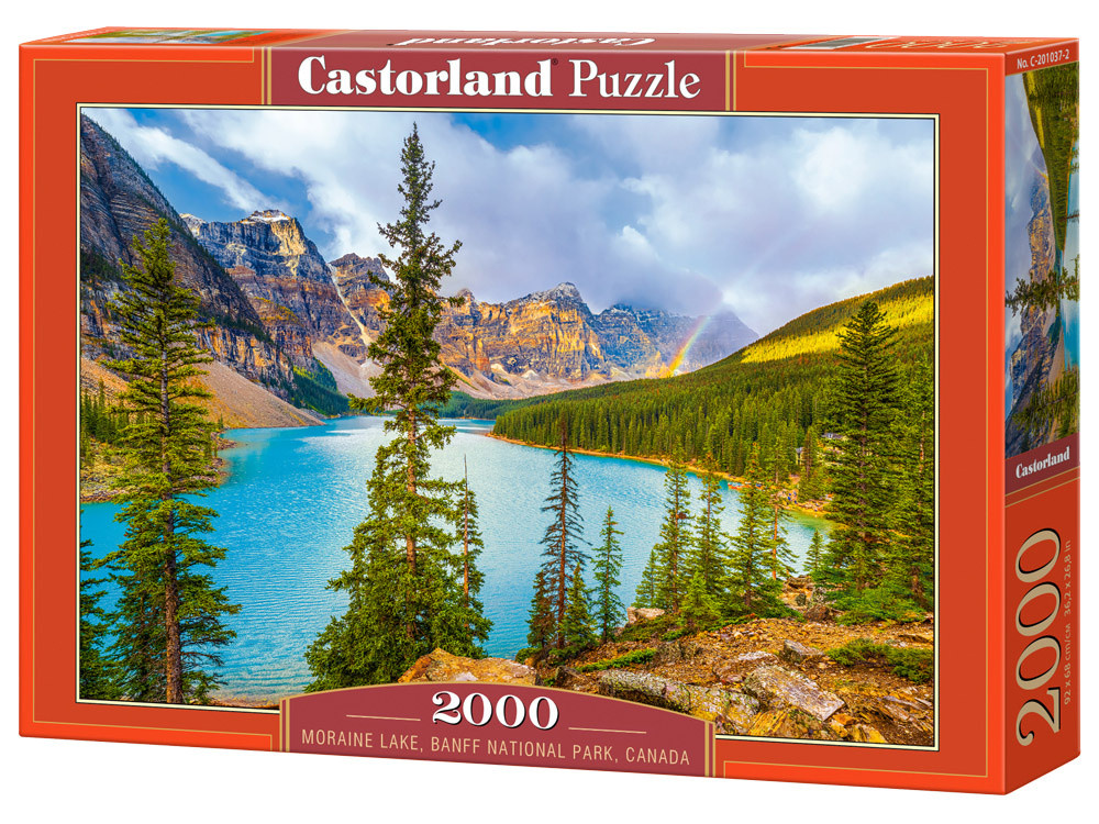 A „Moraine-tó, Banff Nemzeti Park, Kanada” rejtvény egyedülálló ajánlat a természet, a hegyvidéki tájak és a kihívást jelentő fejtörők szerelmeseinek. A kép Kanada egyik legszebb helyszínét ábrázolja – a Moraine-tó türkizkék vizét, amelyet a Sziklás-hegység fenséges csúcsai és sűrű tűlevelű erdők vesznek körül.