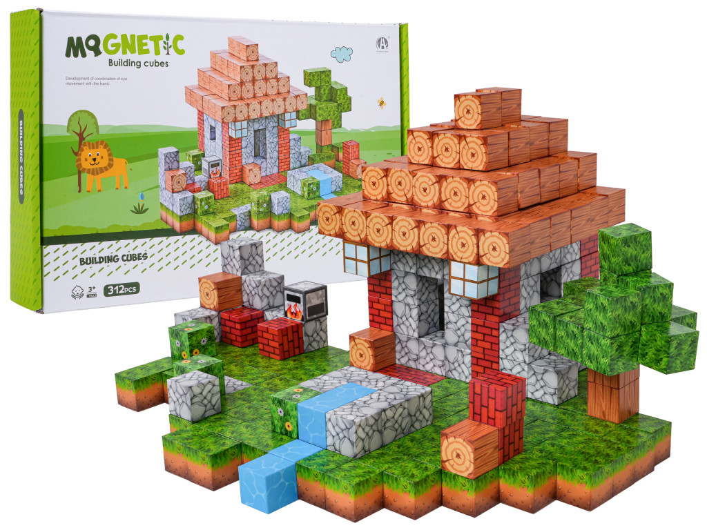 312 db színes 3D mágneses kockából álló készlet 3 éves kortól gyermekek számára. A mágneses kockák a legkiválóbb minőségű anyagokból készültek, élénk színekben pompáznak, és házat és kertet ábrázoló rajzokkal vannak ellátva. A kockák fát, téglát, márványt, füvet vagy fákat utánoznak. Színes házat építhetsz belőlük. A neodímium mágnesek nagyon szilárdan tartanak, stabil szerkezetet hozva létre. A kockák egymásra rakása elősegíti a logikus gondolkodást és fejleszti a gyermekek kézügyességét.