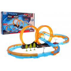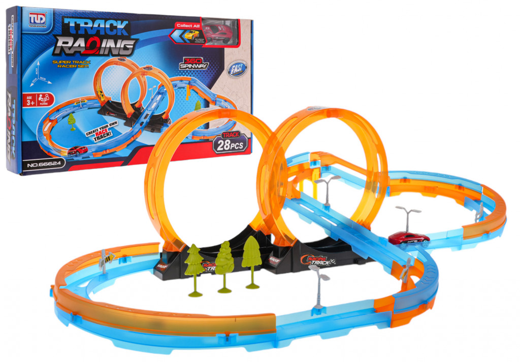 360 fokos hurkokkal ellátott versenypálya 3 éves vagy annál idősebb gyermekek számára. A pálya a legjobb minőségű műanyagból készült, élénk színekben. A készlet 28 elemet tartalmaz, önállóan összeszerelhető. A pálya egyenes szakaszokkal rendelkezik a jármű gyorsításához, 2 360 fokos hurkokkal és egy járművel. A jármű visszahúzós meghajtással rendelkezik. Csak finoman nyomd hátra a járművet, hogy teljes erővel haladj a pályán.
