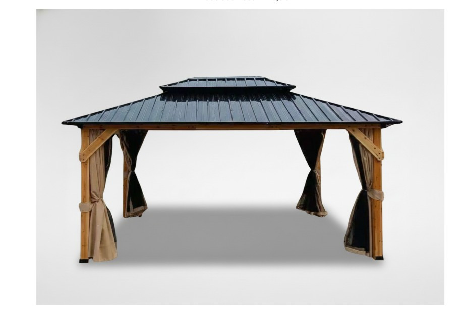 - Típus: fa és acél kerti pavilon