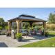Teremtsen egyedi helyet a kertjében a kikapcsolódásra. Ez az elegáns kerti pavilon a természetes fenyőfát tömör acélszerkezettel ötvözi , így tartós, esztétikus és funkcionális teret teremt a kikapcsolódásra. Tökéletes családi összejövetelekhez, nyári vacsorákhoz vagy csendes estékhez kávézás közben.