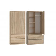 2 ajtós, 2 fiókos sonoma tölgy gardróbszekrény - 180x90x50cm