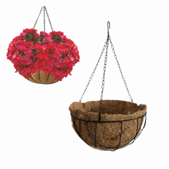 Akasztható fém virágkaspó kókuszrost béléssel 25x5x13 cm