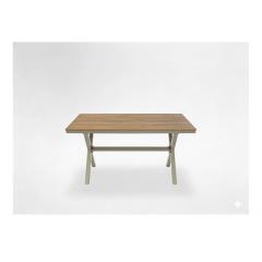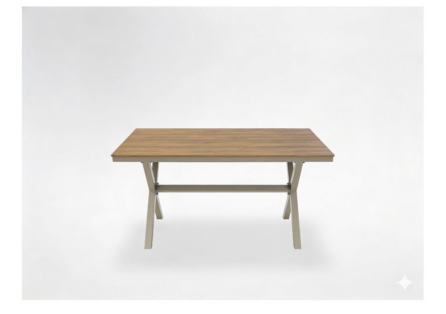 Fedezze fel ezt a modern kerti asztalt, amely minimalista dizájnt , nagyfokú tartósságot és mindennapi kényelmet ötvöz . A bézs alumínium konstrukció és a fahatású asztallap tökéletes kiegészítője lehet bármilyen kertnek, terasznak vagy verandának.
