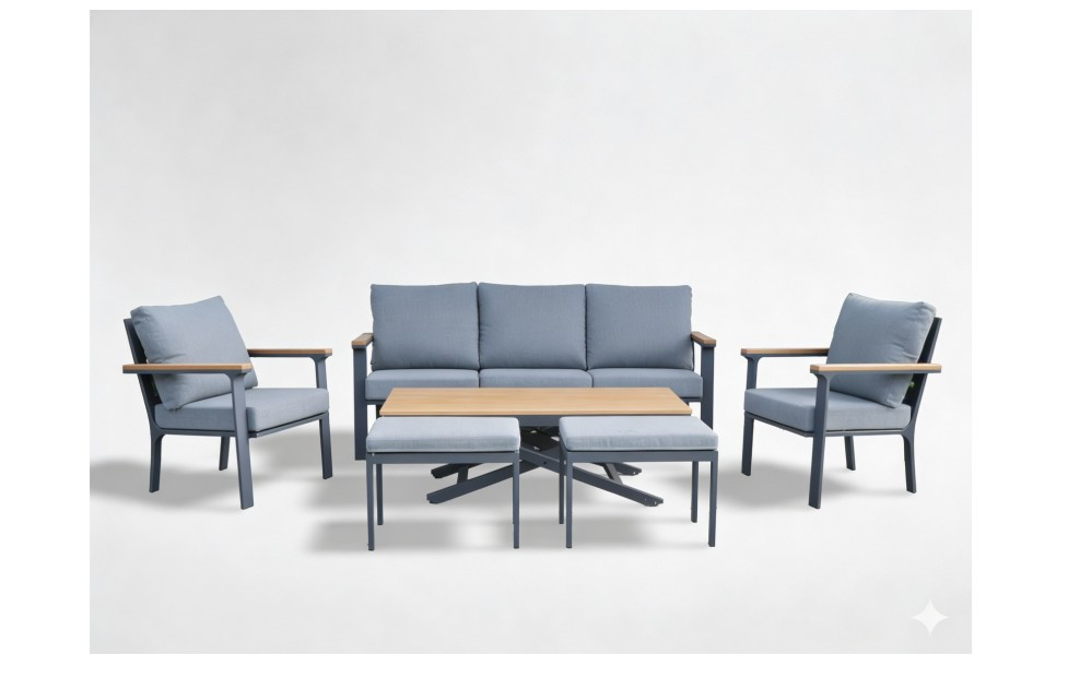 Alakítsa át teraszát, erkélyét vagy kertjét, és hozzon létre egy kényelmes pihenőhelyet! Modern kerti garnitúránk a tartós alumíniumot , a természetes teakfát és a kényelmes párnákat ötvözi , így tökéletes helyet teremtve a kikapcsolódásra a szabadban.