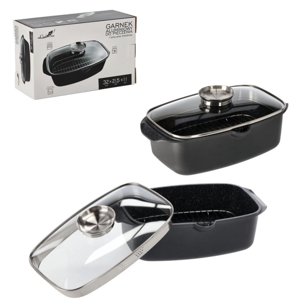 Ez a sokoldalú alumínium sütőforma ideális választás mindennapi sütési feladatokhoz – legyen szó húsételekről, rakott fogásokról vagy zöldséges finomságokról. A hőálló üvegfedő segítségével a sütés során megőrizheti az ételek szaftosságát és ízét, miközben szemmel tarthatja az elkészülés folyamatát.