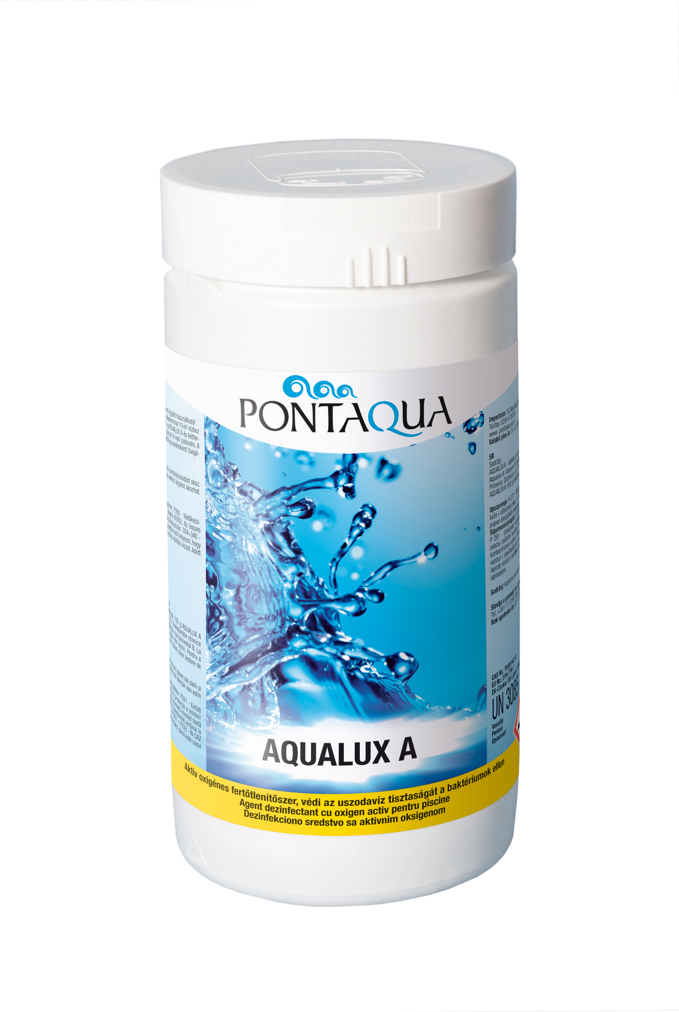 Aktív oxigént tartalmazó szilárd fertőtlenítő szer, 20 grammos tabletta formájában. Teljesen szagtalan, nem irritálja a bőrt és a szemet. Elsősorban beltéri medencékhez javasoljuk klór érzékenység esetén. Az Aqualux A és Aqualux B kizárólag együtt használható!
