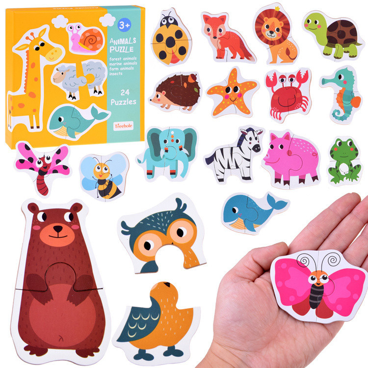 Egy fantasztikus, színes, állatokkal készült rejtvénykészlet 3 éves kortól ajánlott gyerekeknek. Egy nagy, két részből álló puzzle segítségével elrendezhet egy képet egy adott állatról. Emellett a játék vonzóbbá tétele érdekében a kirakó alján angol és kínai nyelvű felirat található, így a gyerek játék közben azonnal megtanulhatja az állat nevét idegen nyelven. A rejtvények tökéletesek a kalandok rejtvényekkel való indításához. A rejtvények összeállítása fejleszti a vizuális memóriát és a térbeli képzelőerőt, türelemre és logikus gondolkodásra tanít, valamint lehetővé teszi a finommotorika gyakorlását.