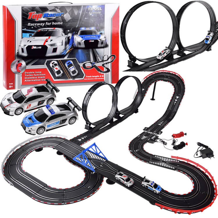 Egy extra hosszú autóversenypálya minden kis rally- és autóverseny-rajongó álma. Az akár 8 m hosszú pálya két autóval, extrém hurkokkal és kanyarokkal sok izgalmat biztosít a szórakozás közben. Az Audi által engedélyezett két szupergyors autó a részletekre való odafigyeléssel készült. Az egész nagyon lenyűgözőnek tűnik.