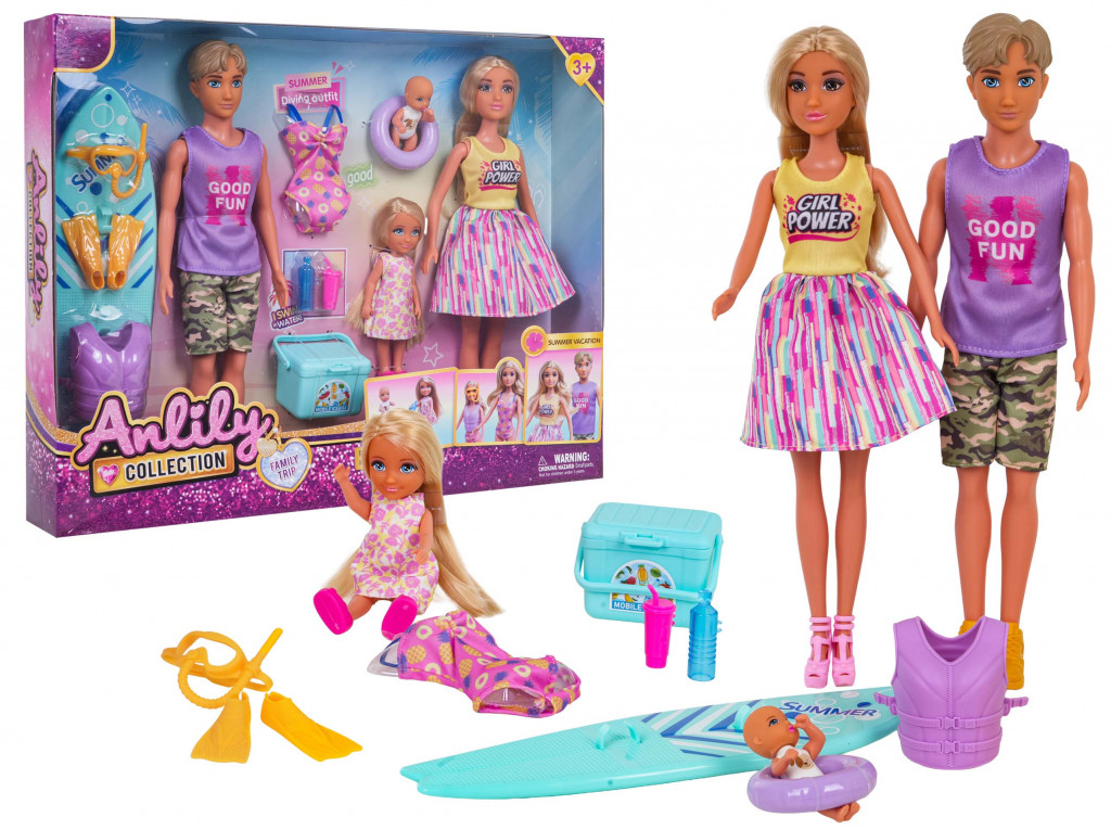 A Vakáció sorozat babáiból és kiegészítőiből álló készlet hároméves vagy annál idősebb gyermekek számára. Minden darab a legkiválóbb minőségű anyagokból, aprólékos odafigyeléssel készült. A készlet tartalmaz egy anyababát, egy apababát, egy lánybabát és egy babababát. A babákhoz a következő kiegészítők tartoznak: szörfdeszka, búvármaszk, uszonyok, mentőmellény, fürdőruha, hűtőtáska, két italtartó és úszógumi. A móka soha nem ér véget ezzel a készlettel.