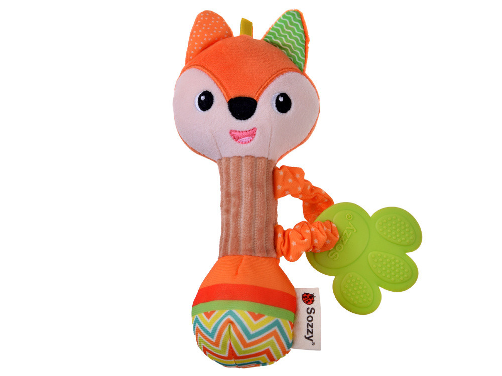 A csörgőhöz egy biztonságos, mancs alakú szilikon rágóka tartozik. Különleges textúrájú felülete gyengéden masszírozza a fájó ínyt, gyors enyhülést nyújtva a fogzás során.