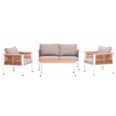 Dohányzóasztal: polywoodból készült teteje (alumínium lécek, fahatású anyaggal bevonva)