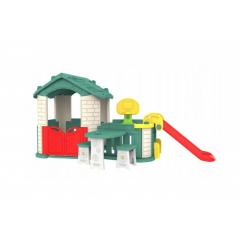 5 az 1-ben kerti fehér - zöld műanyag házikó csúszdával és kosárpalánkkal