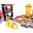 Az autók kijárataival felszerelt négyszintes parkoló, benzinkúttal és útjelző táblákkal is rendelkezik.
