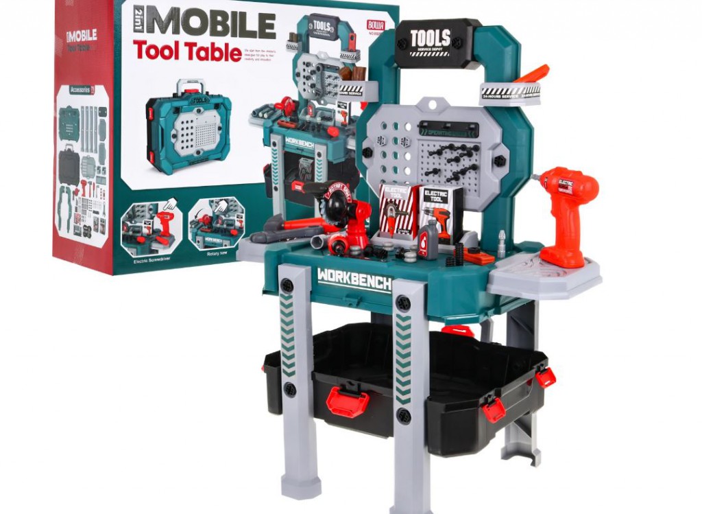 Minden kisfiú álma egy jól felszerelt műhely. Ez a készlet nagyon praktikus hiszen kis helyen is elfér, és a bőröndnek köszönhetően könnyedén lehet rendszerezni és tárolnia szerszámokat. A jól felszerelt készlet 78 elemből áll.