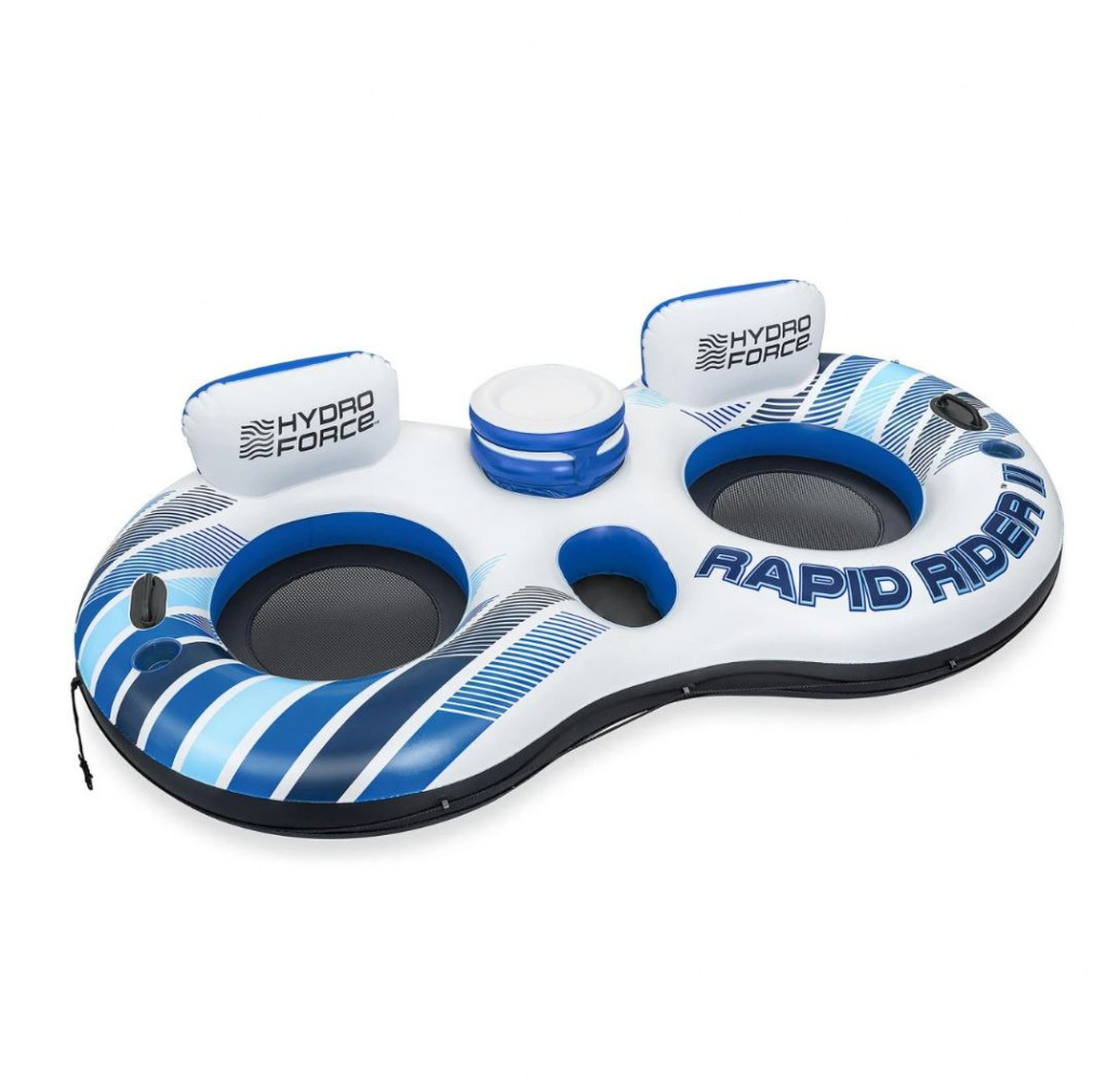 Felfújható dupla vízifotel hálós ülőrésszel,párnával, kapaszkodóval,pohártartóval. A matrac anyaga puha,de tartós anyagból készült, melynek vastagsága 0,40-0,45 mm.