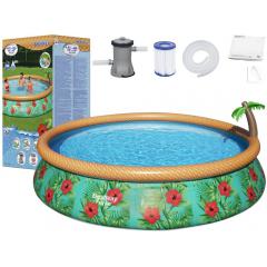 A Fast Set ™ sorozat Bestway Paradise Palms tágulási medencéje minden otthoni kertben hasznos lesz. Lenyűgöző méreteinek, 457 cm x 84 cm-nek köszönhetően kényelmes lesz baráti összejövetelek és családok zsámára.