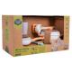 Bioműanyagból készült edénykészlet, három éves kortól alkalmas gyermekek számára. A készlet 10 darabból áll. Tartalmaz egy fedővel ellátott serpenyőt, egy fedővel ellátott fazekat, egy merőkanalat, egy spatulát, két kanalat és két bögrét. Ez a készlet végtelen játéklehetőséget kínál. A készlet anyaga gyermek- és környezetbarát. 120°C-on (250°F) sterilizálható és újrahasznosítható.