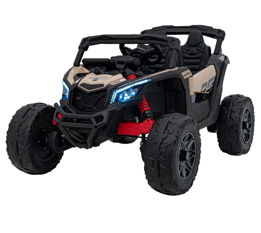 A BUGGY 4 db erős 24V 200W motorral + 1 db 24V 5Ah akkumulátorral + 2,4 GHz-es távirányítóval rendelkezik a szülő számára.