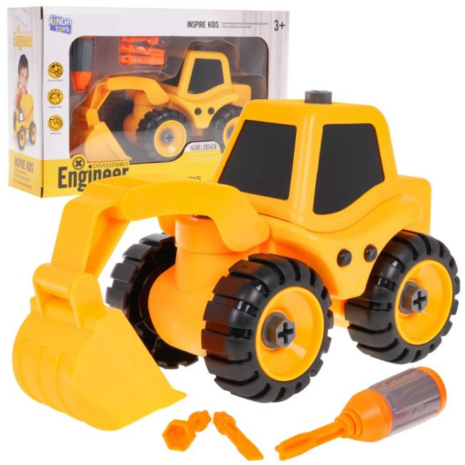 Gyermeke szétszedheti és összeszerelheti a járművet. A készlet tartalmaz egy csavarhúzót cserélhető foglalattal. A markolónakk van egy emelhető kanala.