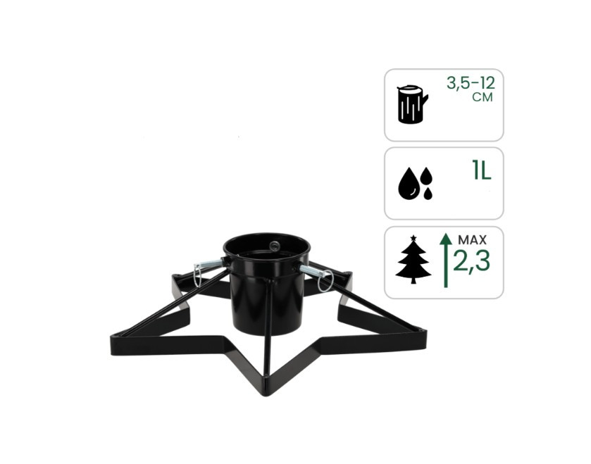 Tökéletes választás azok számára, akik értékelik az eleganciát és a funkcionalitást. Masszív fémből készült, stabil és biztonságos tartást biztosít akár 2,3 m magas fáknak. Az integrált víztartály (1 literes) segít megőrizni a karácsonyfája frissességét a tűlevelek lehullásának csökkentésével.