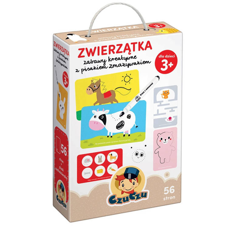 A Czuczu Állatok, kreatív játékok tollal és radírral egy olyan könyv, amelyet többször is le lehet rajzolni és kiradírozni.