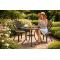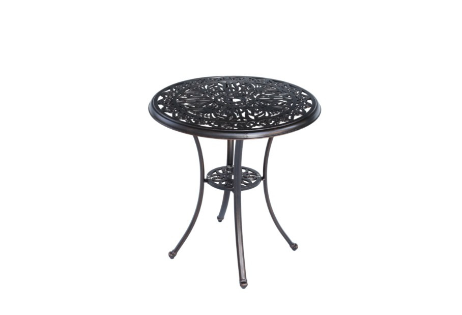 Az elegáns , kerek Danbury kerti asztal a klasszikus dizájnt ötvözi a modern tartóssággal. Tömör öntött alumíniumból készült és antik bronz (vörös réz) stílusú felületkezeléssel egyedi kiegészítője lehet kertjének, teraszának vagy erkélyének. Az áttört asztallap könnyed és időtlen karaktert kölcsönöz neki, míg a masszív konstrukció kényelmes használatot biztosít több évszakban.