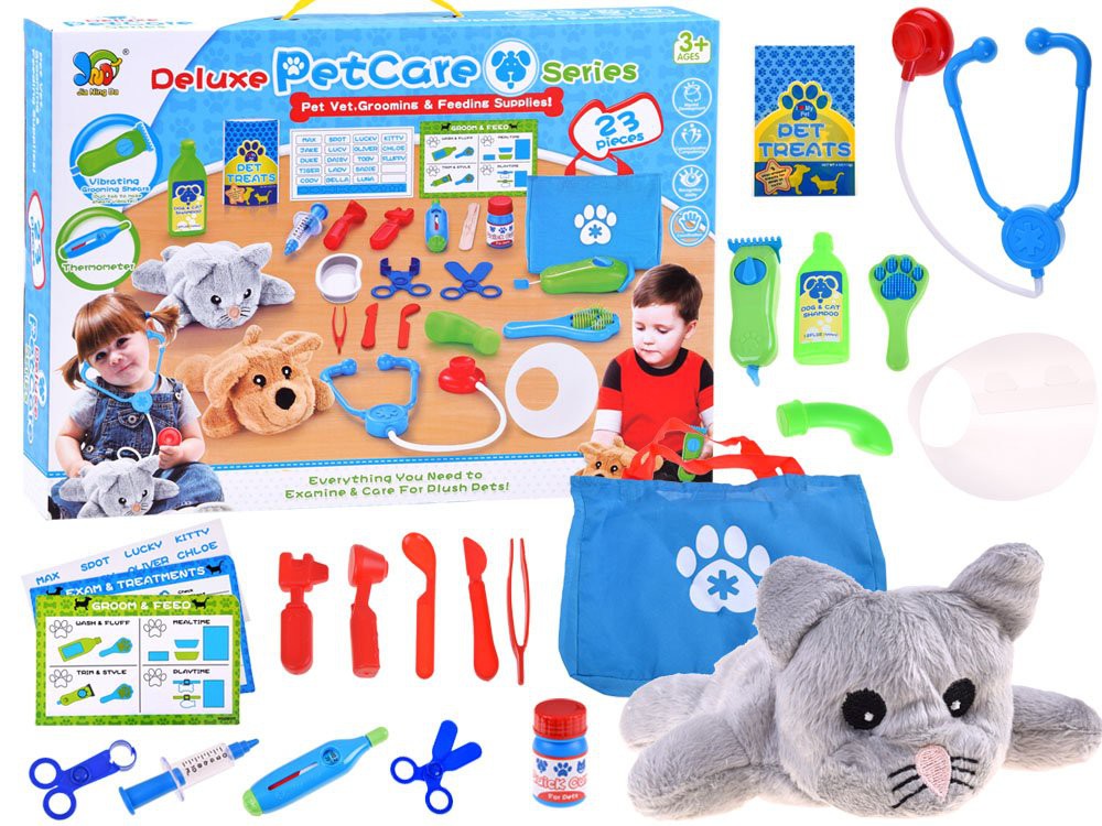 23 darabból álló állatorvos készlet plüss cicával