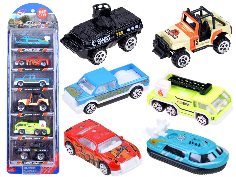 A 6 darabos autó készlet a legjobb választás mindazok számára, akik bátran néznek szembe minden kihívással, és szeretnek autóversenyezni. A készlet segítségével minden fiú megmentheti játékait bármilyen elnyomástól, vagy versenyezhet egy jót. A fémvázas autók műanyag, mozgatható tartozékokkal rendelkeznek.