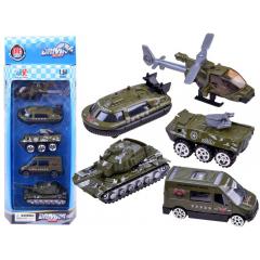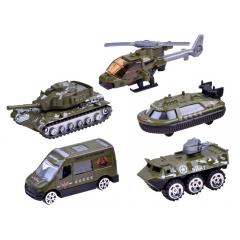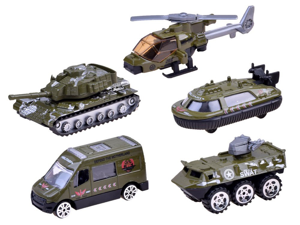 A katonai készlet tartalma: - helikopter - lánctalpas - személygépkocsi - kisteherautó