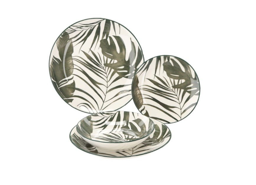 18 darabos kerek étkészlet, zöld levelekkel