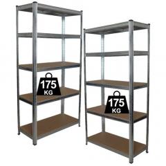 Öt polcból álló nagy teherbirású fémpolc garázsba, irodába, alagsorba, mosókonyhába vagy akár raktárba is. Az összeszerelése maximum 15 percet vesz igénybe, csavart nem igényel, jó lehetőség mindenki számára, aki szeret otthon barkácsolni. A polcok közti távolságok alakithatóak, van lehetőség kettő kisebb polc kialakitására.