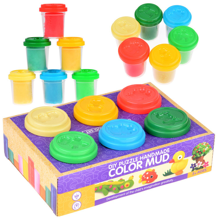 6 darabos színes gyurmakészlet formakinyomós kupakokkal
