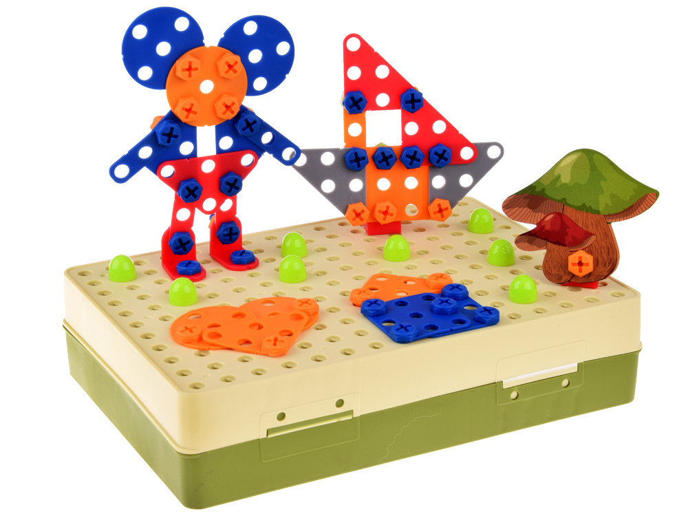 A készlet minden bizonnyal örömet okoz ezeknek a hüllőknek a kedvelői számára. A szerkezet alapja egy lyukakkal ellátott doboz, amelybe képzeletünk szerint, vagy a mellékelt képes instrukció segítségével csavarozhatjuk be a készletben található különféle elemeket.
