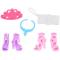 A szettben három stílusos ruhát találsz, mindegyik egyedi dizájnnal és színvilággal, így számtalan ruhakombinációt kínálva minden alkalomra. Két pár magas sarkú cipő egy csipetnyi csillogást kölcsönöz a ruhatárnak, míg az elegáns kézitáska, egy kék nyaklánc és egy finom korona teszi teljessé a megjelenést – tökéletes minden kis hercegnő számára.