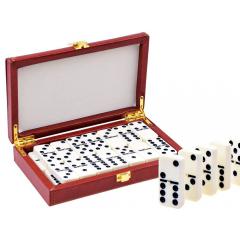 A szett egy nagy, elegáns, öko bőrrel kárpitozott dobozba van csomagolva, Dominoes felirattal, az elegáns doboz tökéletes ajándékba.