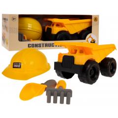 A készlet, egy építőipari jármű sisakkal és tartozékokkal, 3 éves kortól alkalmas gyermekek számára. Ez a készlet tökéletes szabadtéri játékhoz. A jármű mozgó elemekkel és nagy forgó kerekekkel rendelkezik. Kiváló minőségű anyagokból készült, ellenáll a sérüléseknek. A készlet tartalmaz egy gereblyét és egy lapátot is.
