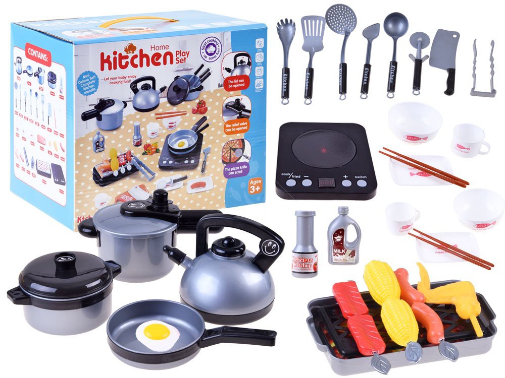 Ez a hordozható készlet minden kis szakácsnak örömet fog okozni. Hiszen minden édesanya tudja, hogy minden kisgyermek szívesen segít az ételek elkészítésében. A konyhában és a grillezéshez szükséges edényeket, termékeket, kiegészítőket tartalmazó nagy készlet ezt lehetővé teszi.