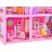 A többszobás babaház a kislányok nagy kedvence. A játék szerkezete rózsaszín műanyagból készült, falai kartonból készültek. A jól felszerelt készlet nagyszerű szórakozást biztosít minden gyermek számára.
