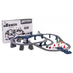A készlet 103 elemet tartalmaz: pályaépítési alkatrészek, vonat, hang- és fényeffektusos állomást, hídot, sorompót, útjelző táblákat, autókat és fiúfigurát.