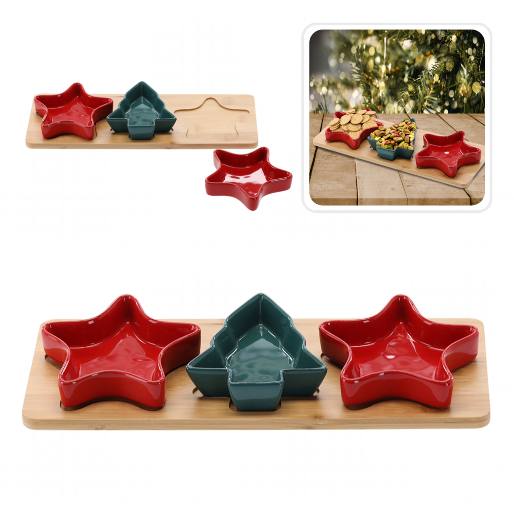 Előétel tálalókészlet – 3 részes karácsonyfa + csillag formájú tál szett