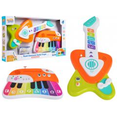 Első tapintható hangszerek tizennyolc hónapos kortól gyermekek számára. A készlet tartalmaz egy gitárt, egy billentyűs hangszert és kottákat. Ezek a játék hangszerek a legmagasabb minőségű, gyermekbiztos műanyagból készültek. A készlet gazdag színei vonzzák a gyermekek figyelmét és játékra ösztönzik őket. A hangszereken való játék fejleszti a gyermekek zenei készségeit és hallását, megtanítva őket a hangok megkülönböztetésére. A gitár 3 db AAA 1,5 V-os elemmel működik (nem tartozék), míg a billentyűzet 3 db AAA 1,5 V-os elemmel működik (nem tartozék).