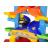 - Színes spirális pálya több kanyarral és egyenes szakasszal.