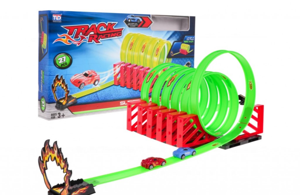 Extrém versenypálya 6 hurokkal és autókkal, 3 éves kortól alkalmas gyermekek számára. A készlet 27 elemből áll. A pálya teljes hossza 185 cm. A pálya egyenes szakaszokat, hurkokat és egy "tűz" hurokkal ellátott indítót tartalmaz. A szórakozás garantált.
