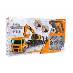 A készlet 185 elemből áll. Hang és fényeffektusokkal rendelkeznek. A teherautó tetején villognak a lámpák, fülkéje előre dönthető. A fúró hangot ad ki fúráskor, és kék led világítást. A kotrófülke 360 fokkal elfordítható, a kanál karja felfelé és lefelé emelkedik.